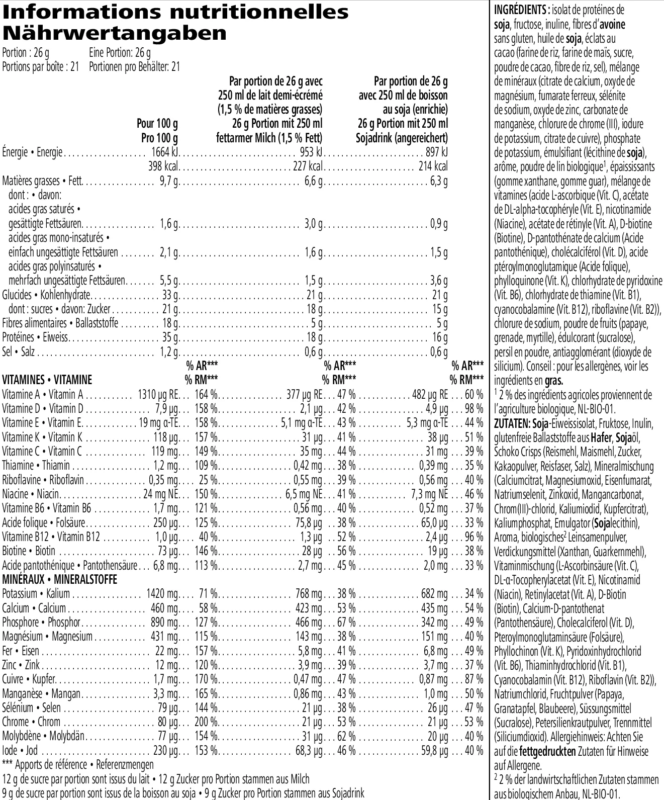 * bei Zubereitung mit 250 ml angereichertem Sojadrink