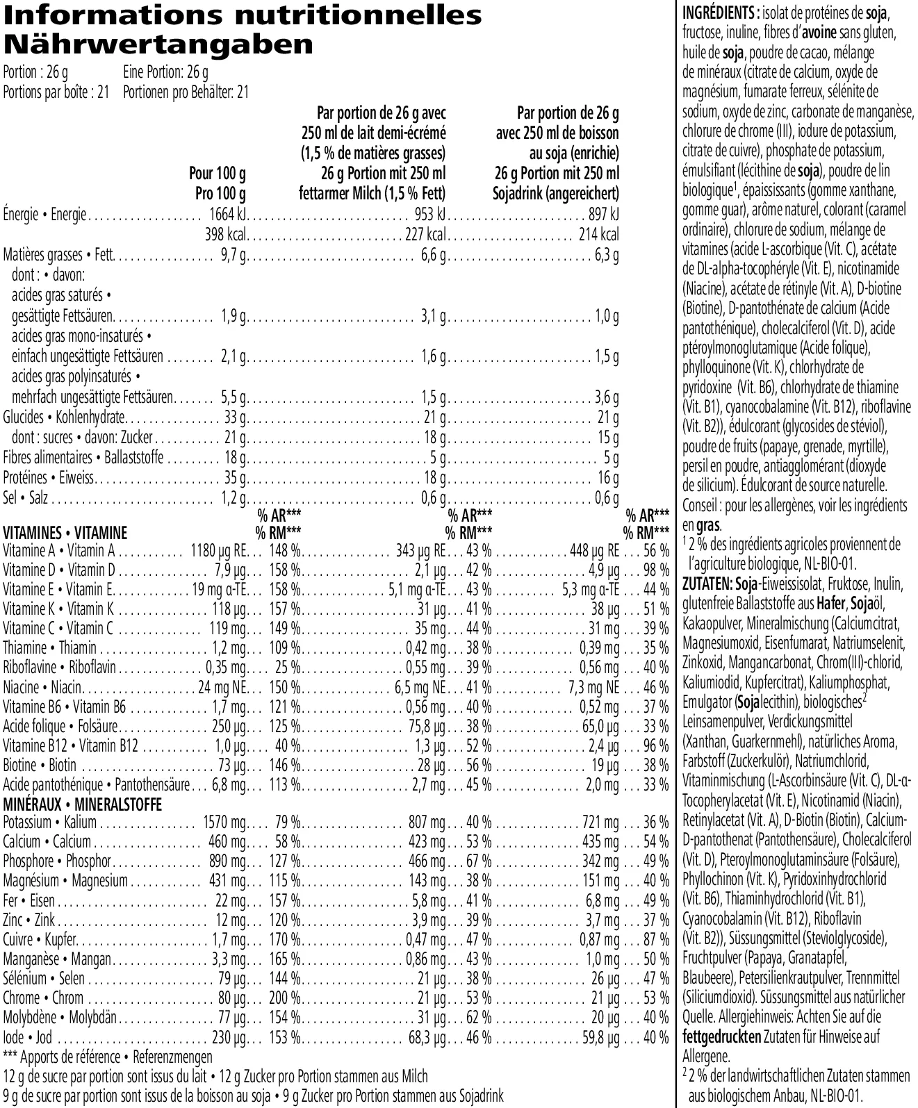 * bei Zubereitung mit 250 ml angereichertem Sojadrink