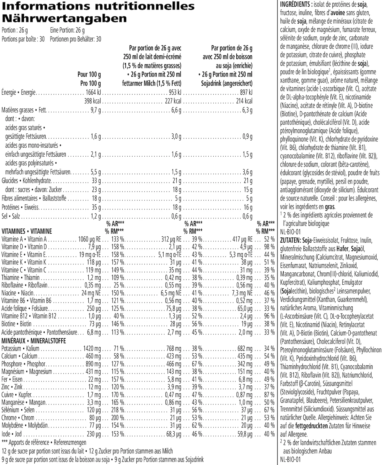 **Nährwerte gelten nur, wenn die Zubereitung gemäß den Anweisungen auf dem Etikett erfolgt.