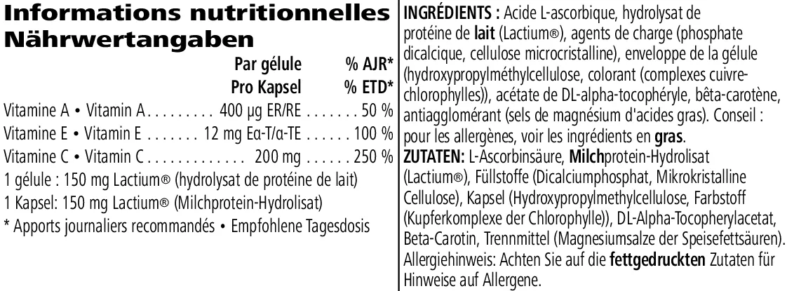 Restore ist ein Nahrungsergänzungsmittel, das Lactium® enthält – ein einzigartiges bioaktives Peptid, das aus Kaseinprotein gewonnen wird. Restore liefert außerdem 200 Milligramm Vitamin C, das dazu beiträgt, die normale Funktion des Immunsystems während und nach intensiver körperlicher Betätigung aufrechtzuerhalten. Es ist außerdem reich an Vitamin E, das zum Schutz der Zellen vor oxidativem Stress beiträgt.