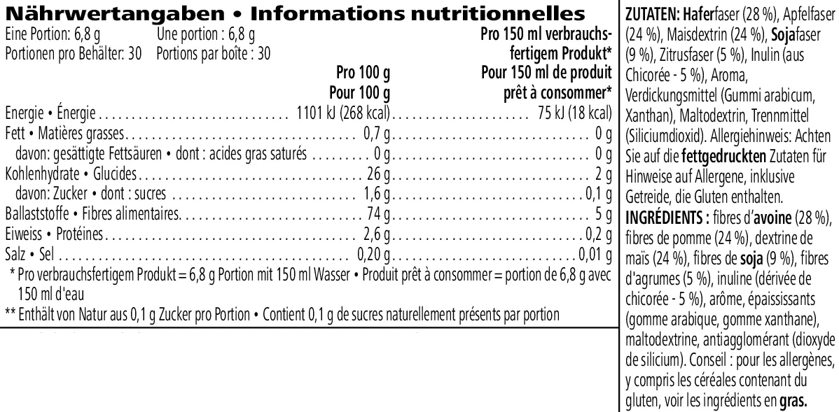 • Enthält sowohl lösliche als auch unlösliche Ballaststoffe